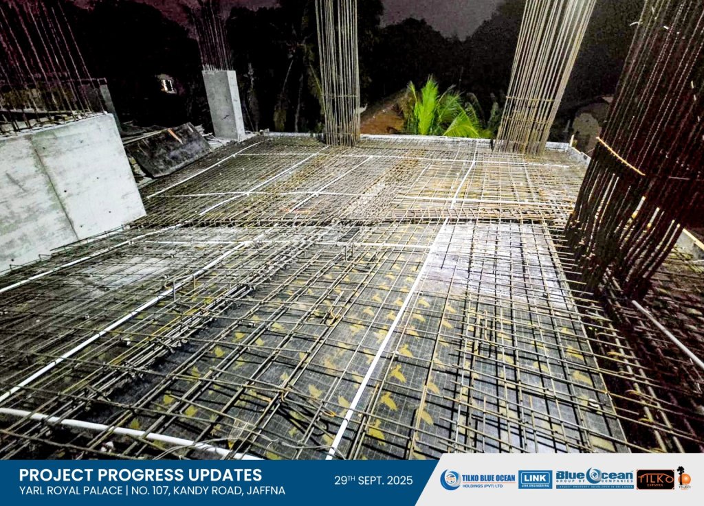 The concrete work for the 04th Level Car Park ramp and slab has now commenced—marking steady progress toward delivering an exclusive living experience in the heart of Jaffna.