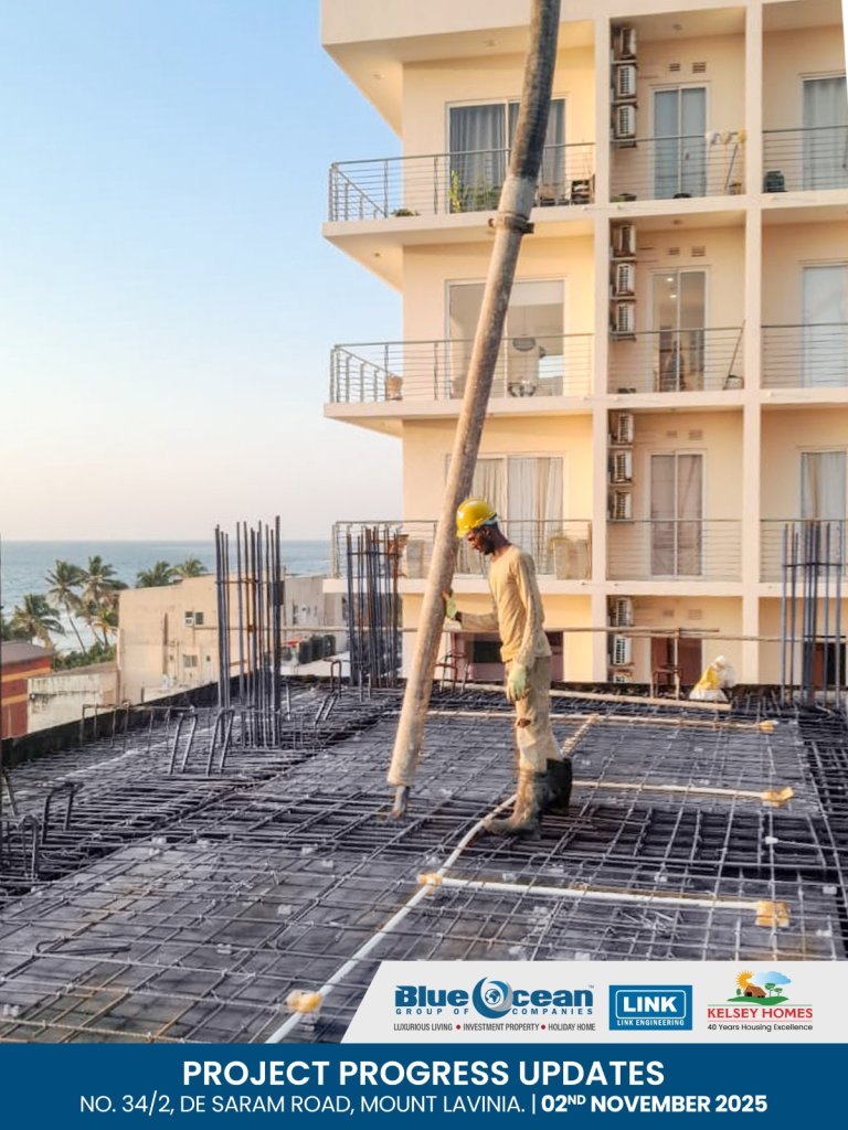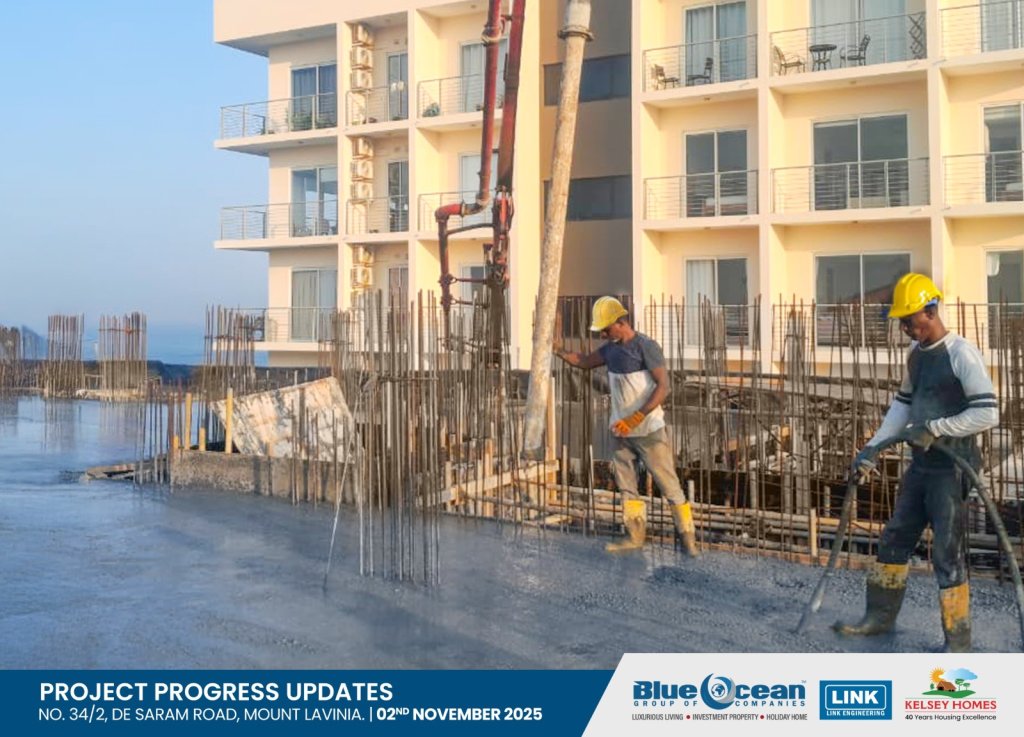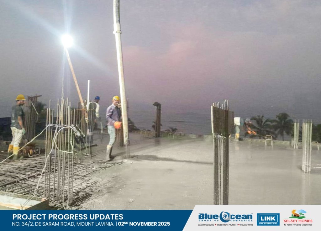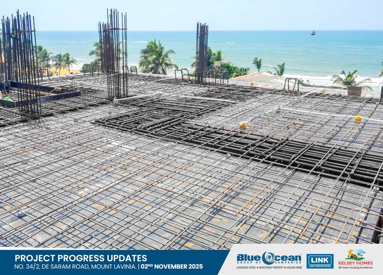 We are happy to share with you a significant milestone: the commencing of the concrete work for the Transfer Floor (Zone B) beam and the final slab at the luxury oceanfront condominium complex, which is located at No. 34/2, De Saram Road, Mount Lavinia .