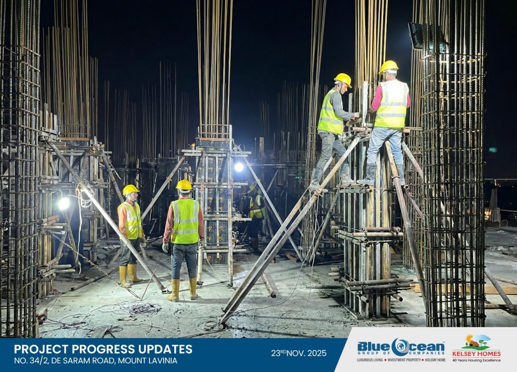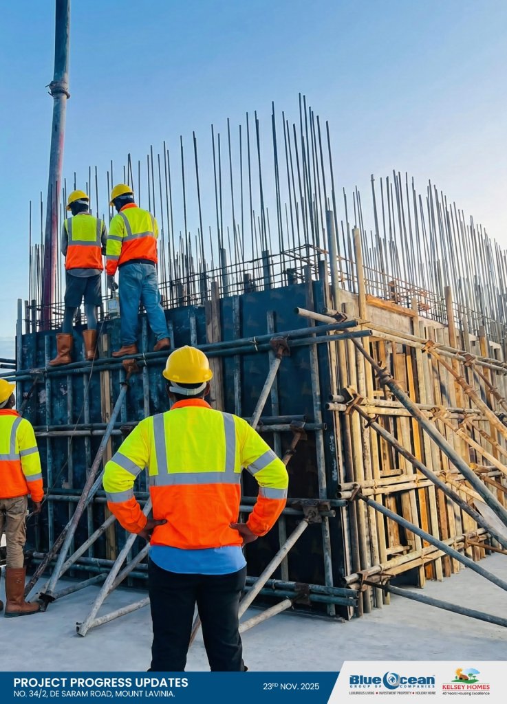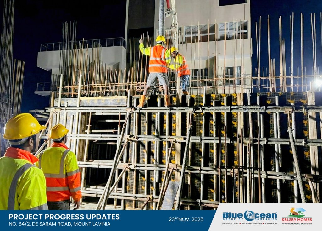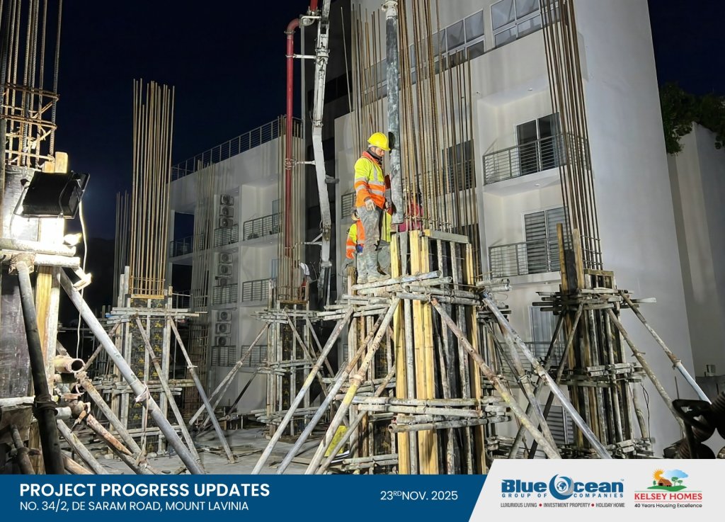 We are pleased to share a significant milestone in the creation of your future luxury oceanfront residence at No. 34/2, De Saram Road, Mount-Lavinia. Yesterday, we began the concreting of the columns for the 01st Residential Floor, alongside the staircase and lift walls—an important step in realizing the refined architectural vision of this prestigious development.