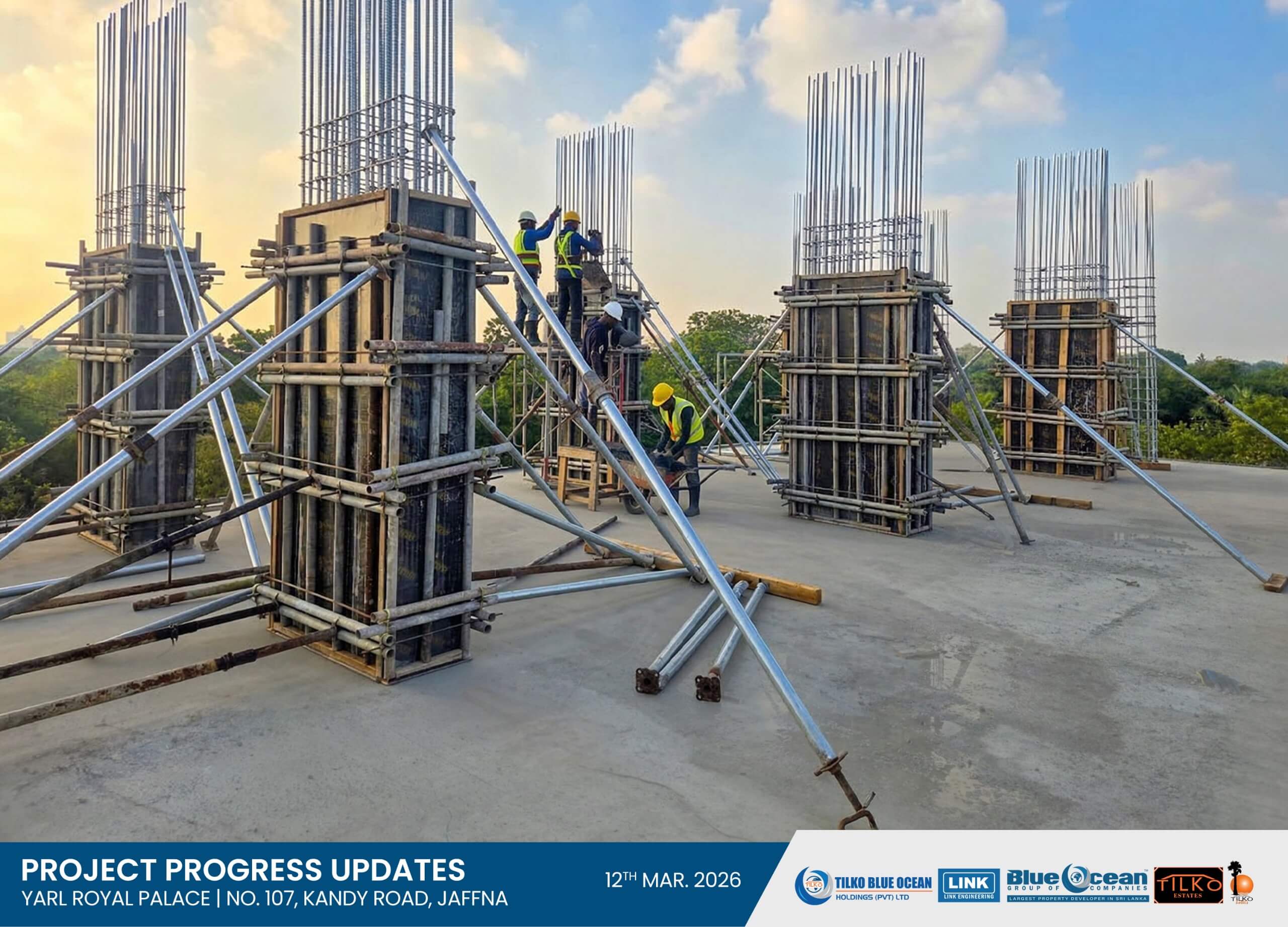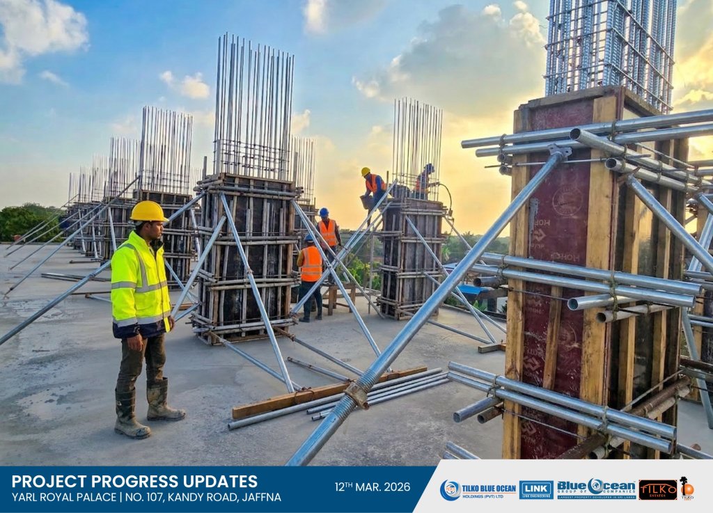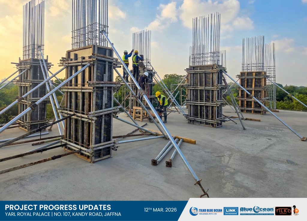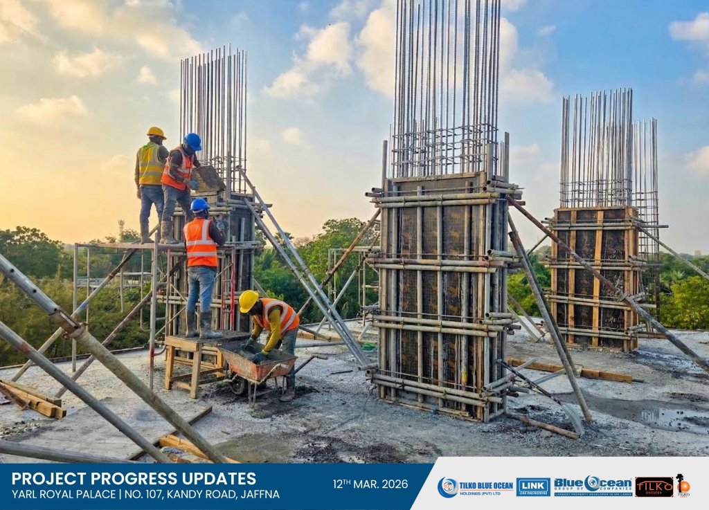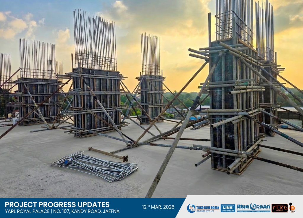 We are pleased to inform you that the column concreting for the 1st Residential Floor has now commenced at our prestigious luxury condominium development at No. 107, Kandy Road, Jaffna.