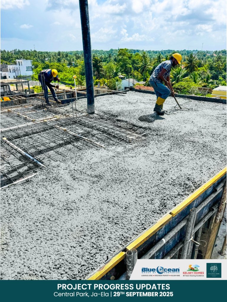 We are delighted to share the latest progress on our exclusive 15-acre gated housing community at Central Park, Ja-Ela . The roof floor slab concreting for Family Villa…